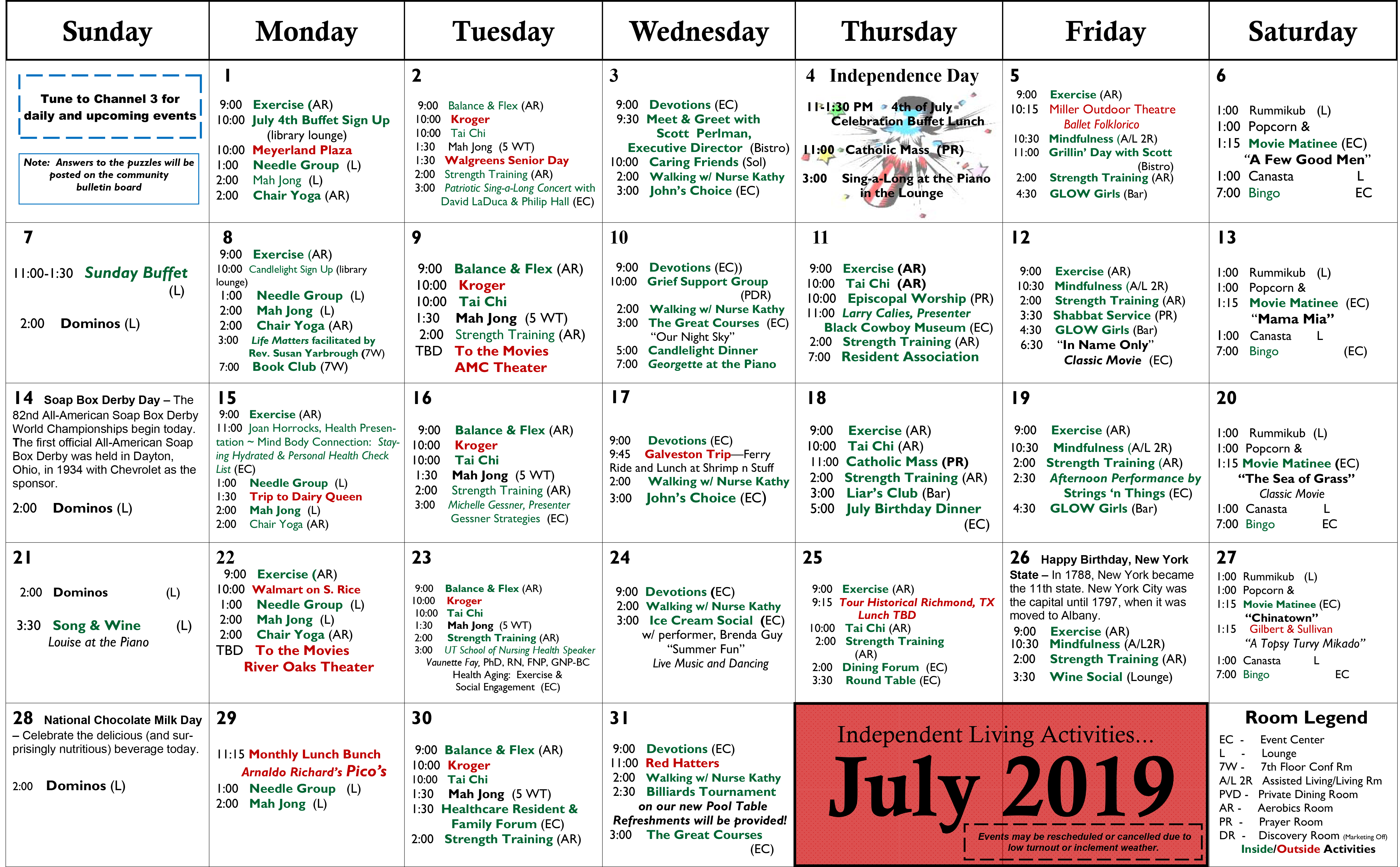 ACTIVITY CALENDARS
