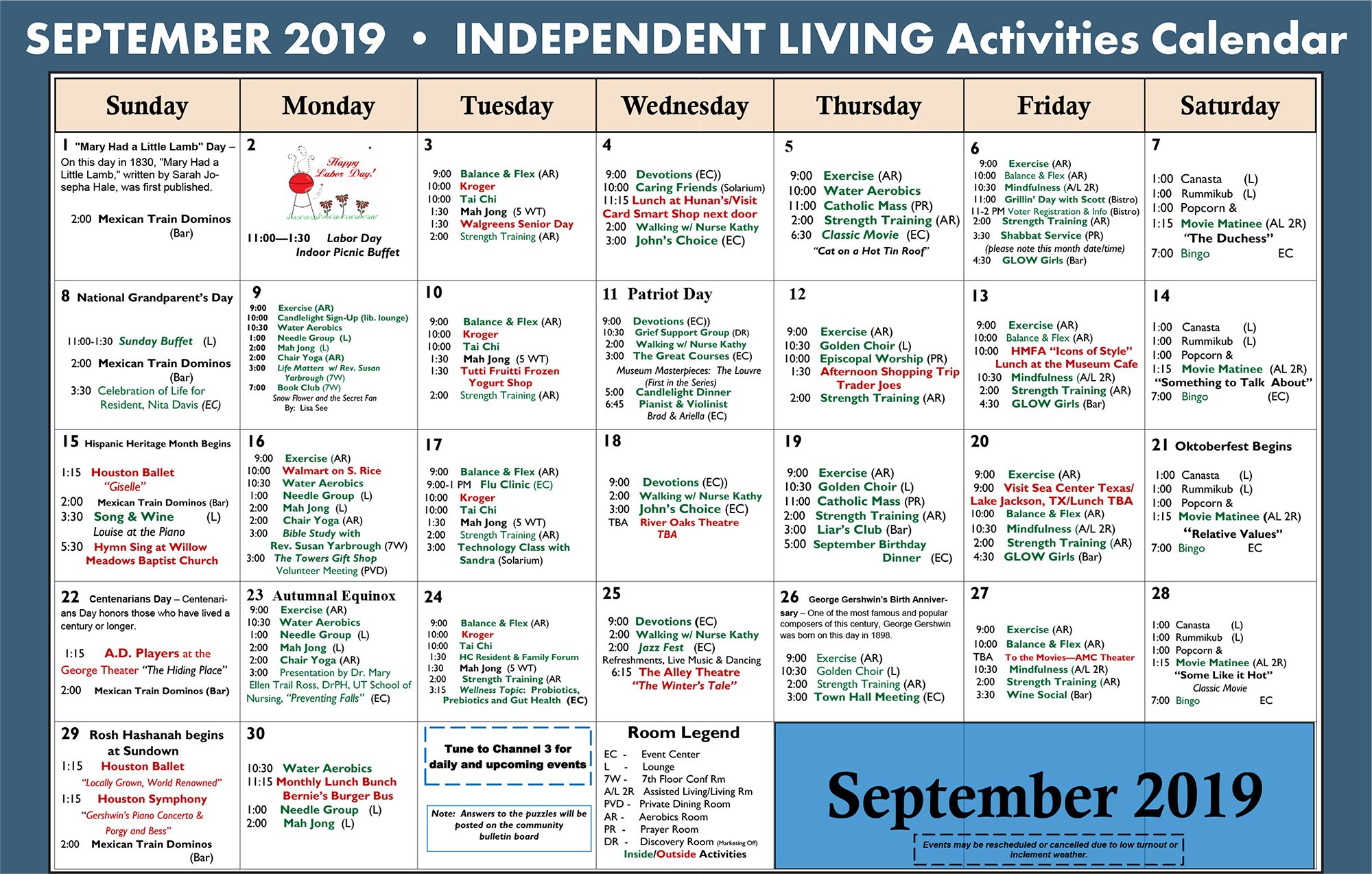 Brazos Towers at Bayou Manor is a community of actively engaged residents with a full-time activities staff offering planned excursions, social events, educational and artistic opportunities. Residents enjoy aqua-aerobics in our indoor pool and participate in various exercise classes. Our Event Center is always busy with either live music, lectures, multi-denominational chapel services or resident meetings. Most importantly, our Residents’ Association is actively engaged in all aspects of life at Brazos Towers at Bayou Manor to ensure your experience living here is all you expected.